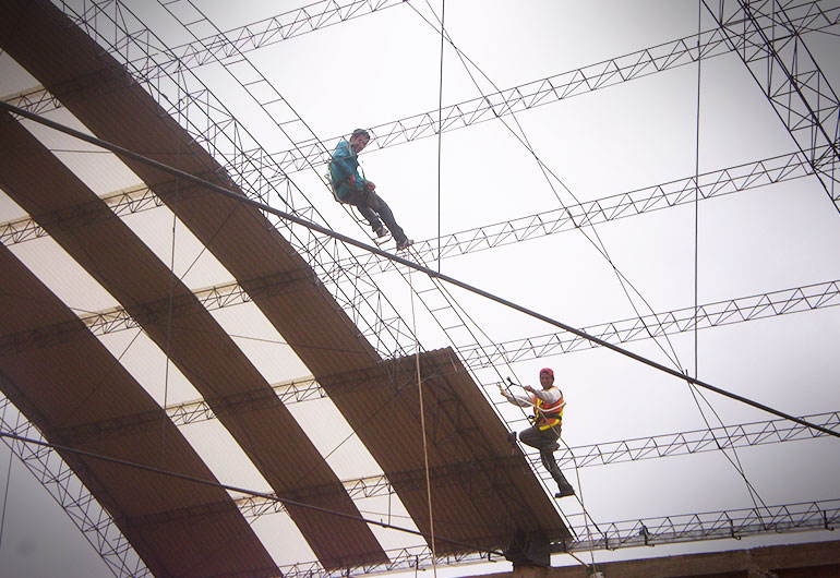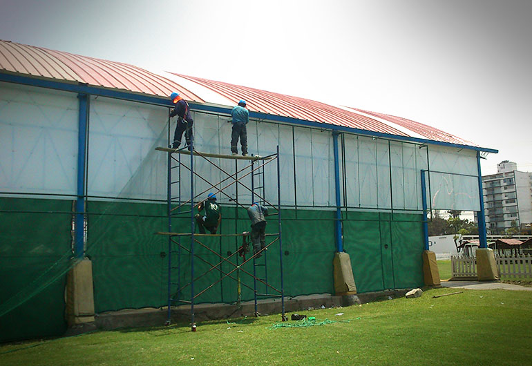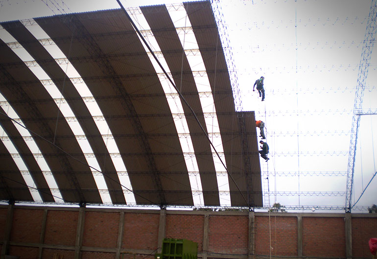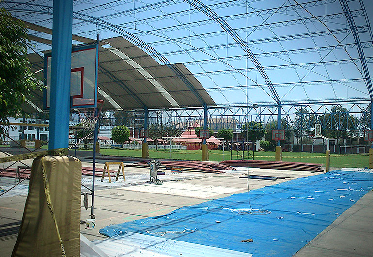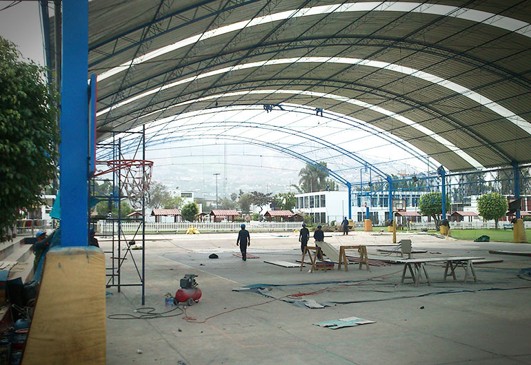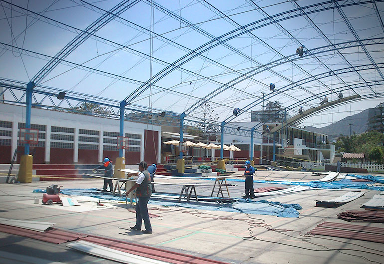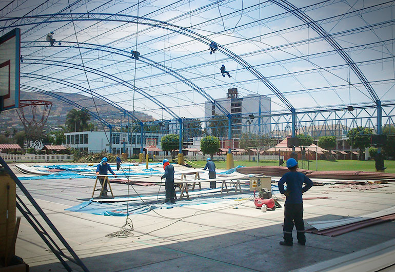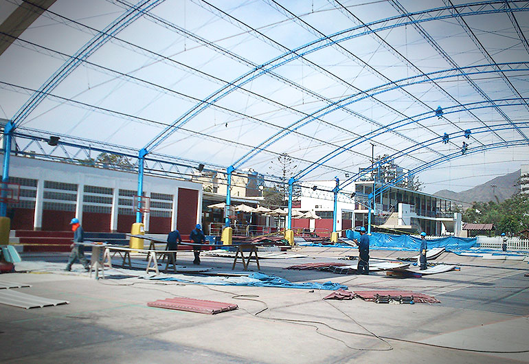 Diseño y montaje de techo parabolico para loza deportiva en el colegio FRANCO PERUANO