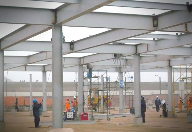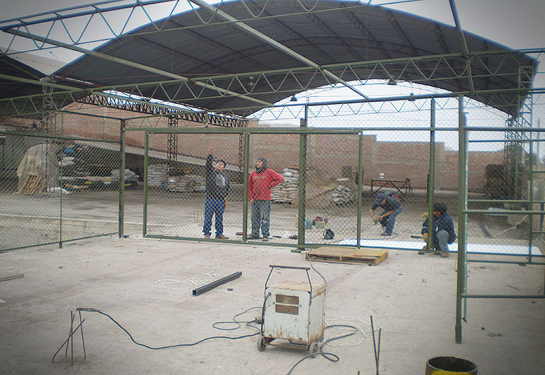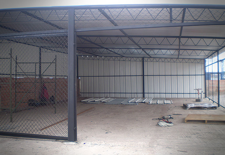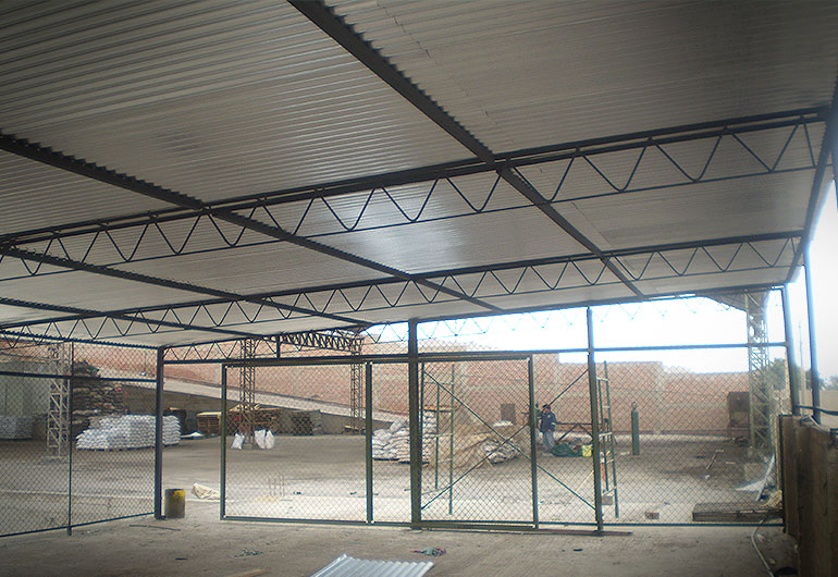 Construcción de techo para almacen y cerramiento con malla metálica